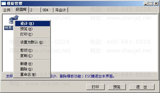 (2)选中“公共”页签下的模板, 右击选择“复制”,然后进入当前操作员的页签右击选“粘贴”,右击该模板,点击“设计”。
