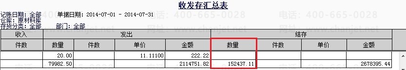 查询7月底中原材料仓库的结存时,核算和库存的收发存汇总表结存数不一致.