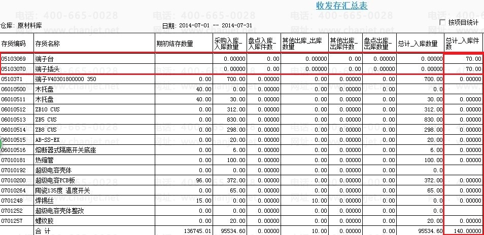 1、首先查看收发存汇总表,查询有入库件数的存货,发现有入库件数的存货为05103069和存货05103070.