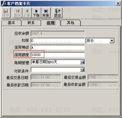 软件中能否实现对客户应收账款的管理,给客户设定一个信用额度,如果在后续业务中,该客户的应收账款额度大于设定的额度,提示信息或者不继续交易?