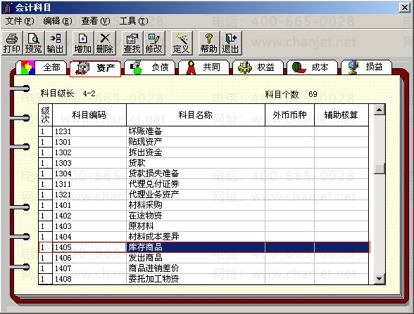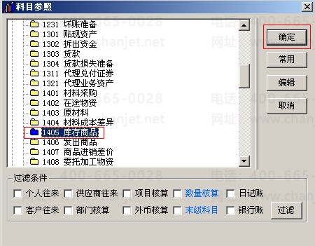 2.在会计科目中资产类找到库存商品科目。