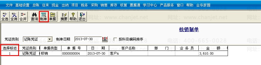 c、核销制单(点击“客户往来制单”-勾选“核销制单”):