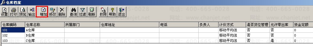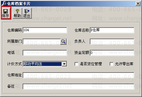 (1)点击“基础设置”—“购销存”—“仓库档案”,进入“仓库档案”后点击“增加”,选择“计价方式”,录入相关信息,最后点击“保存”。