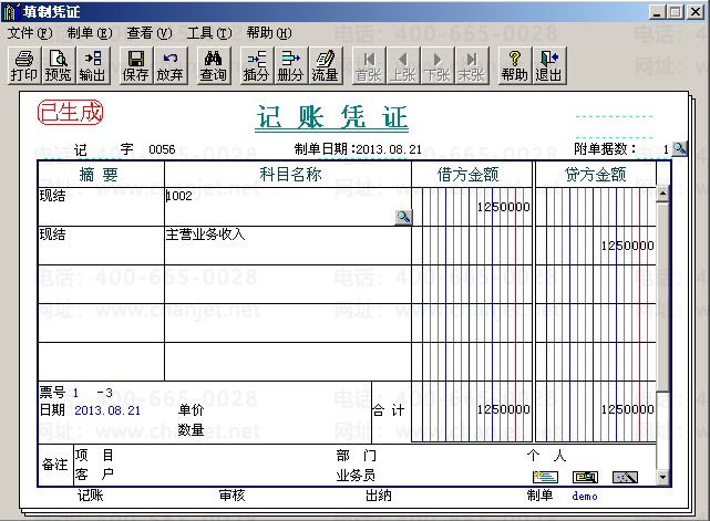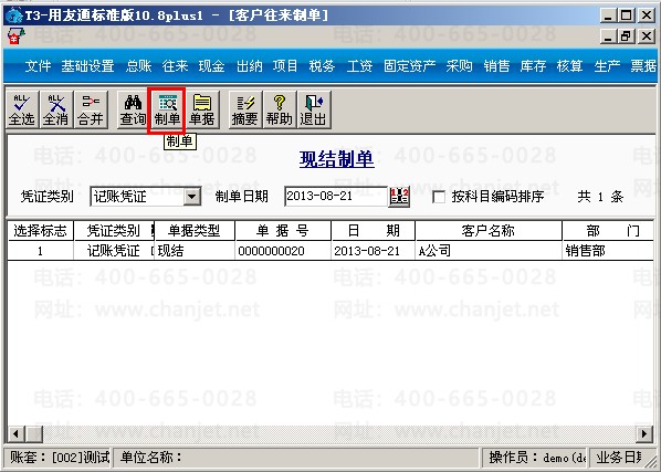 (4)销售发票复核后,在核算管理中制单“现结制单”。