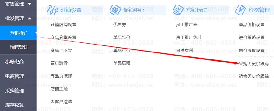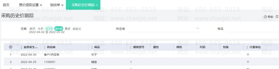 页面路径:营销推广—价格管理—采购历史价跟踪