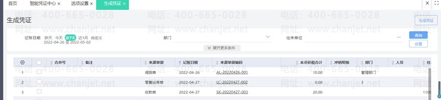 小提示:为避免单据和日记账生成同一笔业务的凭证(一笔业务既涉及单据也涉及日记账),请在生成凭证时注意进行筛选