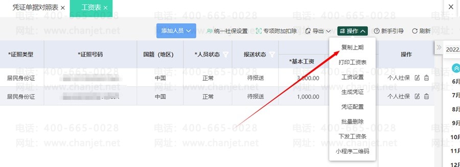 工资表生成凭证:支持手工录入工资表数据,或通过下载模版,导入工资表数据。可通过复制上期工资表数据,生成本月数据。可按标准个税税率表测算本月个税信息。可通过工资表,生成相关计提工资、社保凭证。