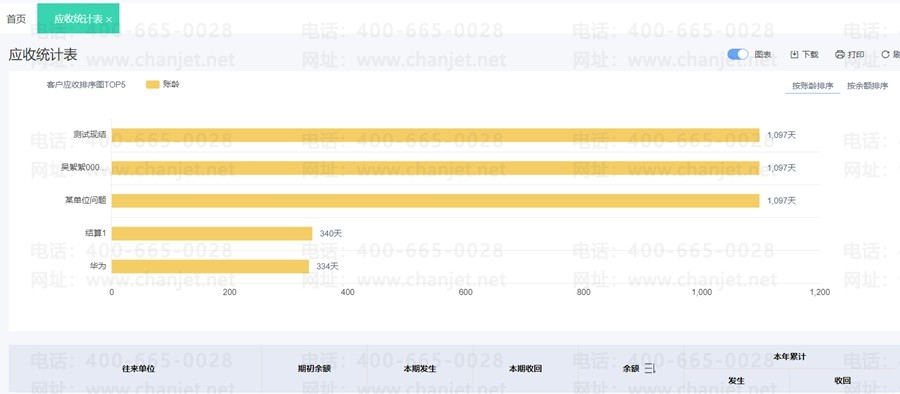 ①应收统计表表格中数据包含截止目前对应应收账款余额≤0 的数据,但是客户应收排序图中不显示该客户数据。