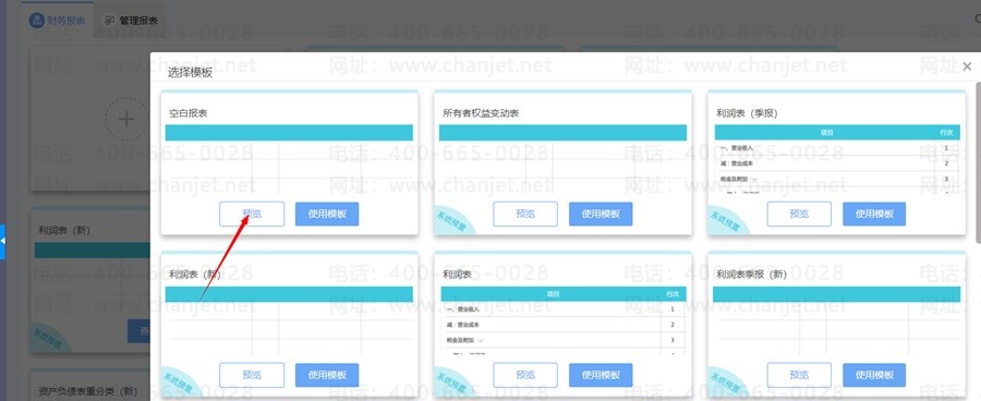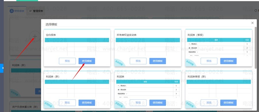 第二步:在弹出的界面中可以选择参照系统预置的报表生成自己的报表,或者选择空白报表;