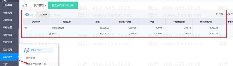 操作:固定资产-固定资产折旧统计表