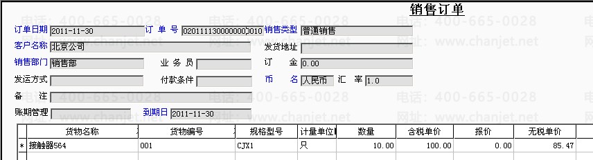 a、举例:填制一张销售订单,点击“销售管理”—“销售订单”—“增加”