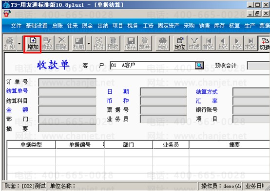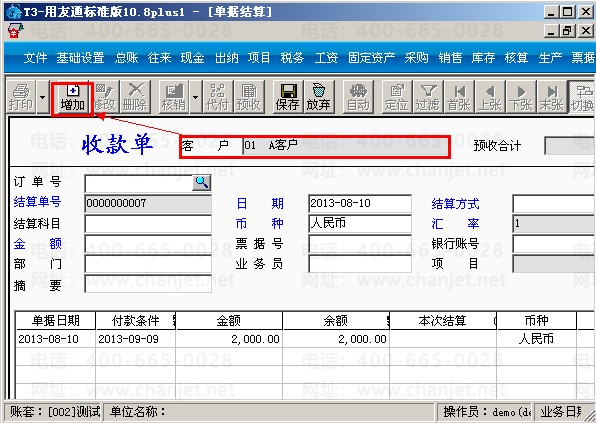 A.点击“收款单”,选择客户A之后点击左上角的“增加”按钮,