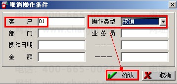 点击菜单栏的“销售”-“客户往来”-“取消操作”,选择客户,操作类型选择“核销”,再选择单据点击“确定”即可。