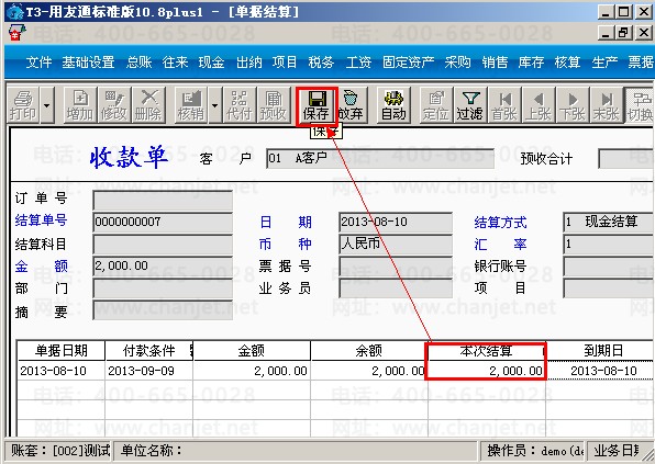 C.输入本次结算金额保存。