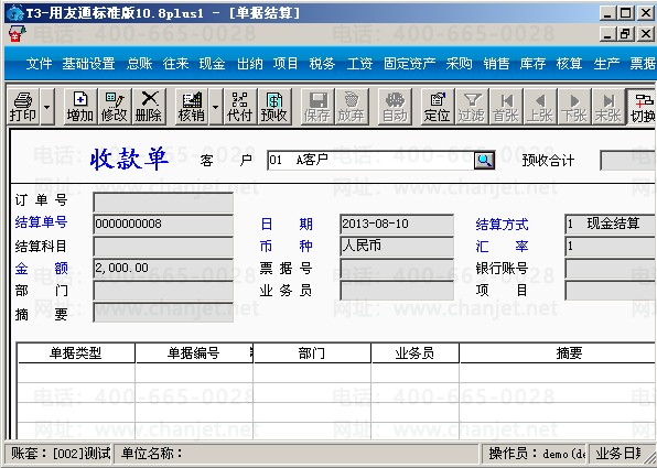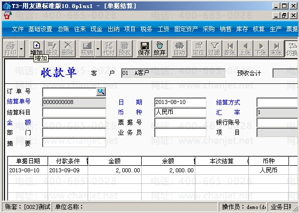 A.点击“收款单”选择客户A,就会出现以下界面: