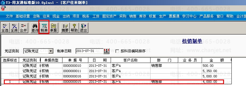 (5)对预付款进行制单,点击“客户往来制单”—选择“核销制单”