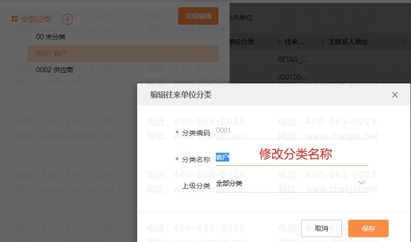 往来单位分类编码修改: