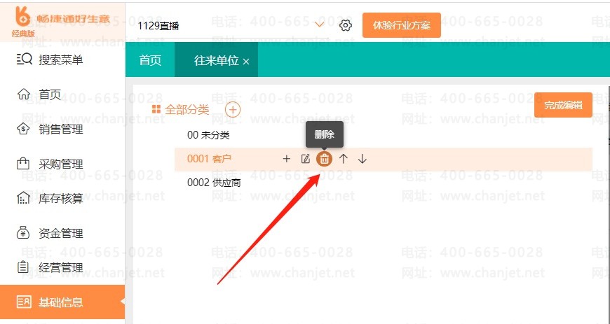 ②单位名称:系统预制的【零散客户】不能删除