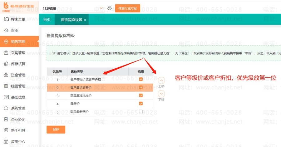 第二步:在【售价提取设置】中优先选择【客户等级价或客户折扣】