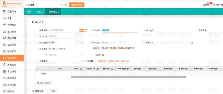 电脑端操作:【基础信息】-【商品】,新增商品维护商品信息(可通过条码到云端获取商品自动填写商品信息)保存