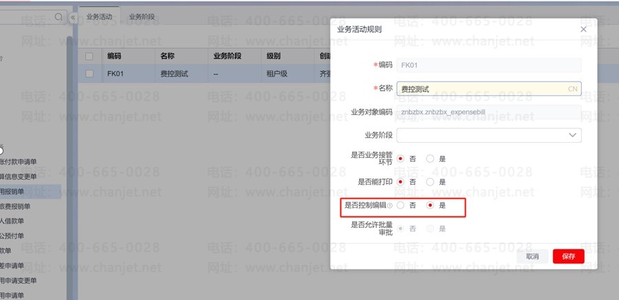 STEP 3:在此单据对应的审批流中,找到要设置为修改环节的审批环节。然后按下图设置。即可实现。