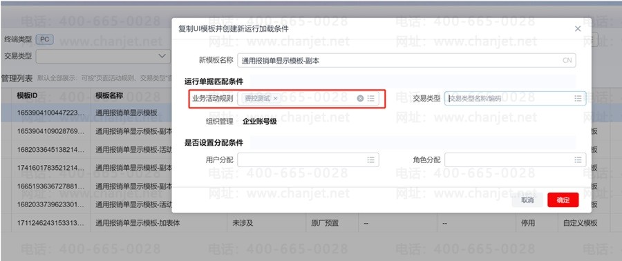 STEP 2:在【UI模板】节点找到要设置的交易类型的模板。复制一个模板出来,复制的时候在操作界面选择刚才加好的“业务活动规则”,然后保存。