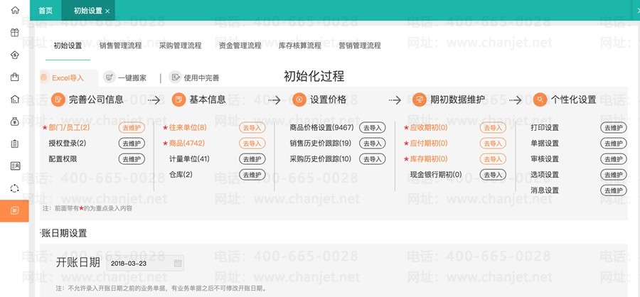 注意:如果您的数据之前在excel中维护,系统支持excel文件导入;如果您之前使用的是用友T1->商贸宝、友加畅捷T1飞跃或者管家婆辉煌,系统为您提供数据一键搬家!
