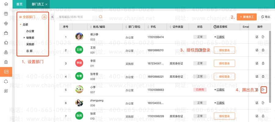 (3)踢出企业:被踢出的员工,如果有登录账号此后将不能继续登录系统;