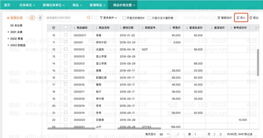 营销->价格管理->商品价格设置,快速导入初始化商品价格,日常上新快速定价,批量智能改价