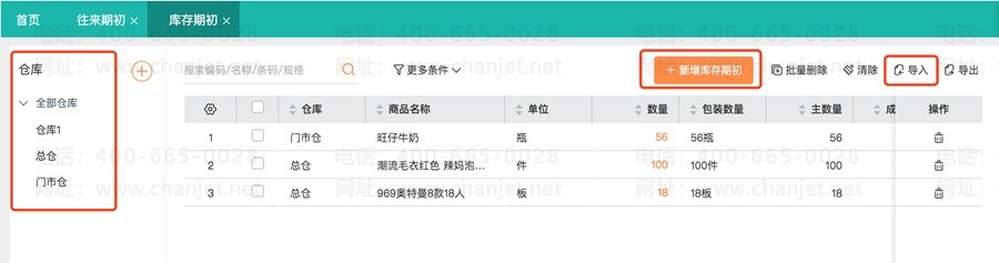 使用软件时,仓库中还有存货。盘点后可以按照仓库录入每个仓库的商品数量和成本单价,系统自动计算期初成本金额,同时支持导入