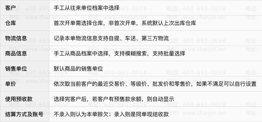 • 销货单:销售业务最重要的单据,用来记录实际交易信息,直接影响客户应收款和库存,支持一张单子同时处理销货与换货