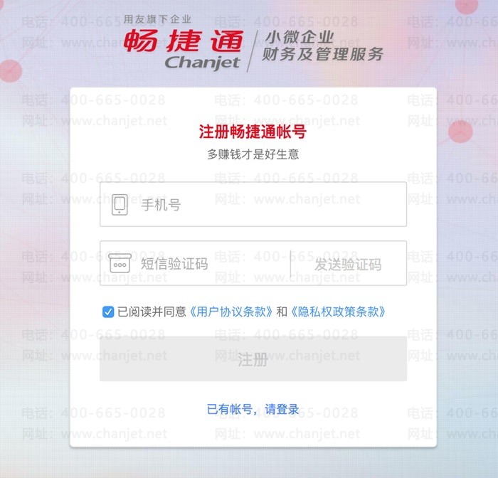 (2)如果已有畅捷通账号,可直接点击【登录】,登录后点击【进入应用】;