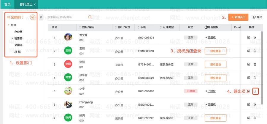 (2)授权员工登录
