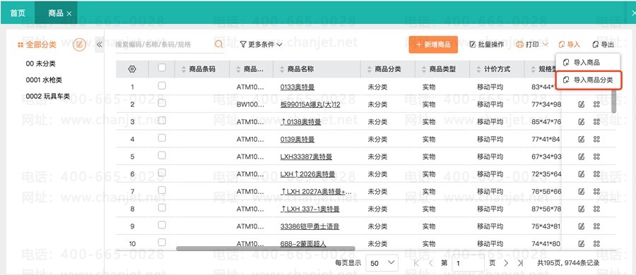 在初始使用时,支持维护商品分类信息,也支持通过excel方式导入商品分类,或者在整理商品档案时,把商品分类编码和分类名称,在商品档案里整理好,通过excel导入商品时,同时由系统自动创建商品分类信息;