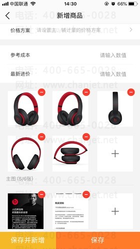 • 图片:最多可以维护6张商品主图,30张商品详情图,支持拍照、从本地相册选取和从京东一键抓取商品图片