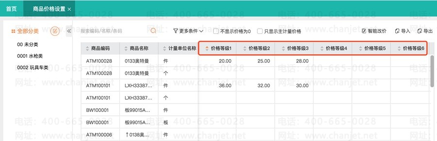 1、先到【商品价格设置】修改等级价,等级1的价格,等级2的价格