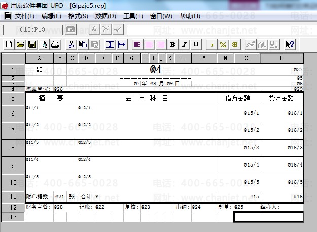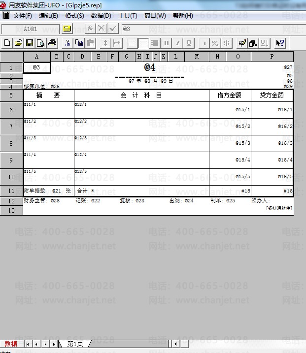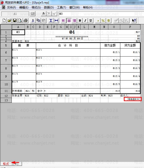 3、点击报表左下角的“数据”,切换成“格式”状态,将“畅捷通软件”删掉,点击“保存”;