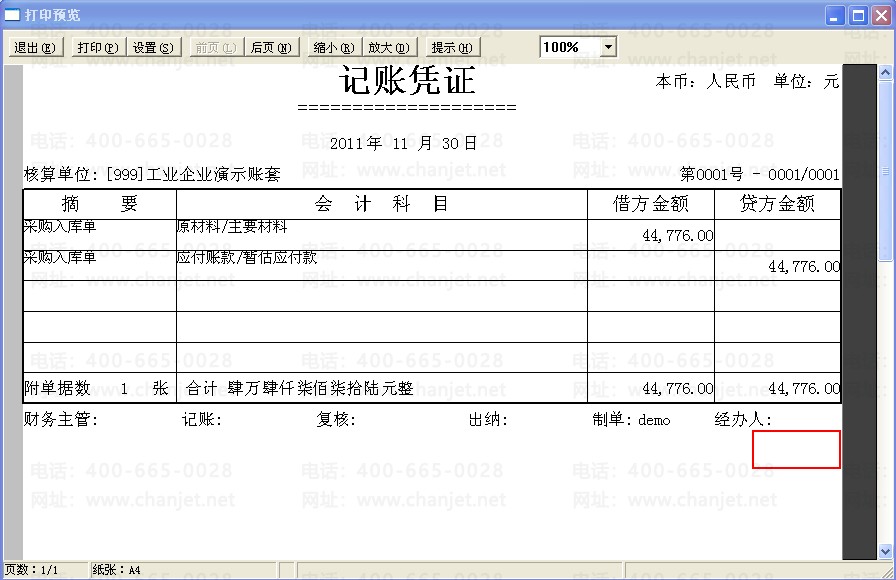 如何使打印凭证时没有”畅捷通软件”标志,如何调试