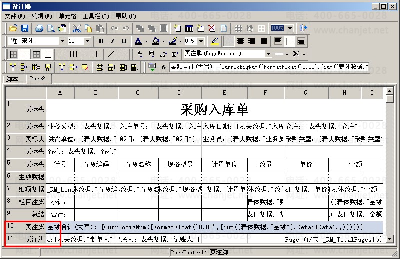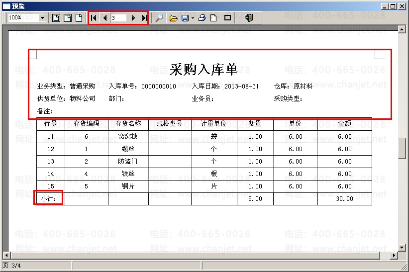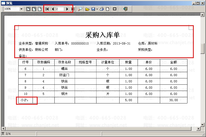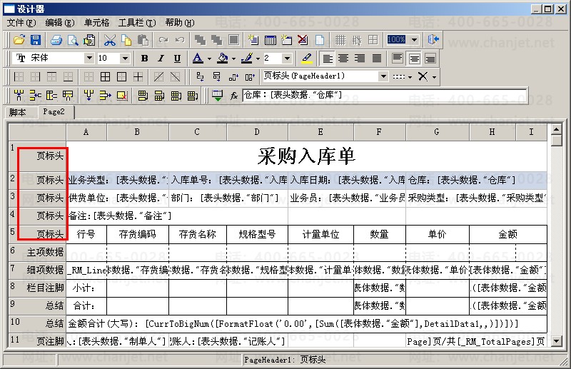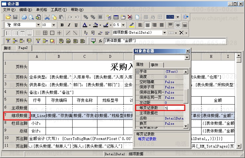 采购入库单打印时,发现第一张打印了表头和标题,但是第二张表头和标题都没有出现。可是客户要求张字打印5行,且每页都必须有表头项目和小计,如何处理?