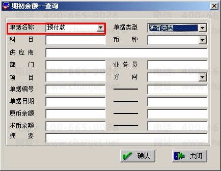 (2)打开采购模块,点击“供应商往来”—“供应商往来期初”,选择“预付款”
