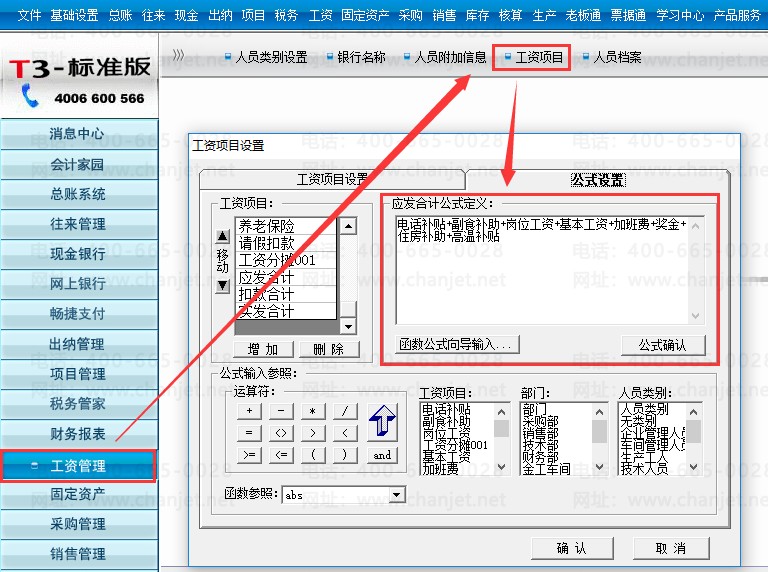 1.依次点击【工资管理】-【工资项目】,在【公式设置】页签下,查看【应发合计公式定义】,公式包含【高温补贴】工资项目。