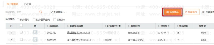 通过“基础信息->商品管理->商品”模块维护完商品后,如果该商品适合在旺铺销售,商家需要通过选择商品功能,先将商品同步至旺铺。