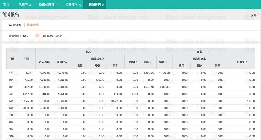 1.看板模式,查看本月、本年的企业主营业务、其他业务收入、成本和利润情况