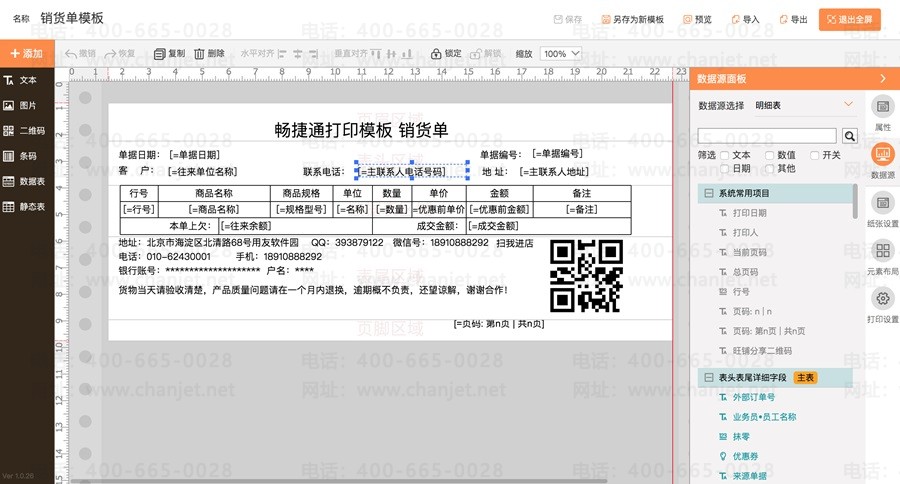 (2)数据源:选择销货单支持的字段在打印时显示出来,支持搜索,筛选