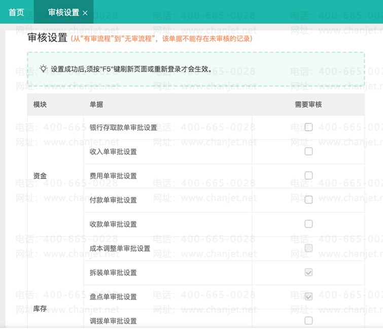 注意:当审核环节由有审流程改为无审流程时,所有单据必须都已经审核通过