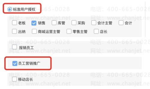 授权员工为【移动仓管】时,需要扣减【移动仓管】用户数。