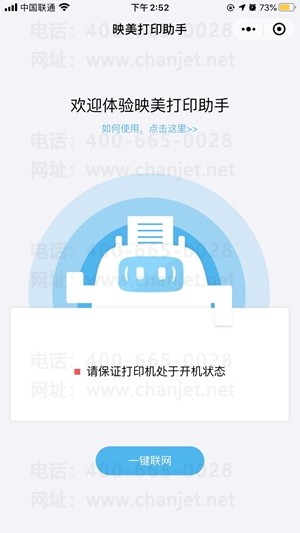 (2)在打开的映美打印助手页面,点击【一键联网】扫描打印机(此时需要保证打印机处于开机状态)