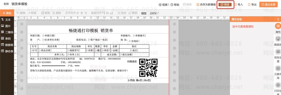 5、在好生意/好业财中打开【打印模板】中的【预览】或单据查看态下的【打印预览】页面,查看打印机中否已经添加成功