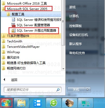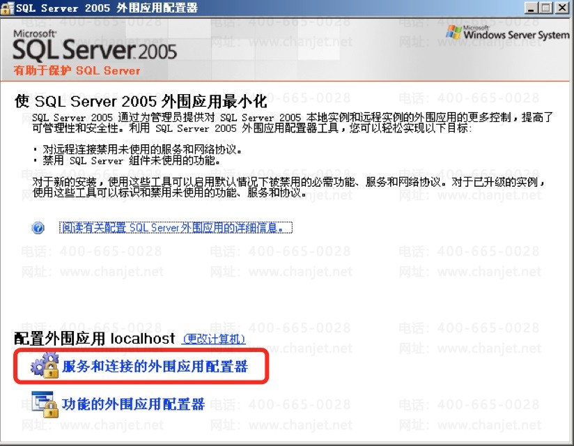 (1)点击开始→程序→Microsoft SQL Server 2005→SQL Server 外围应用配置器,弹出应用配置器: