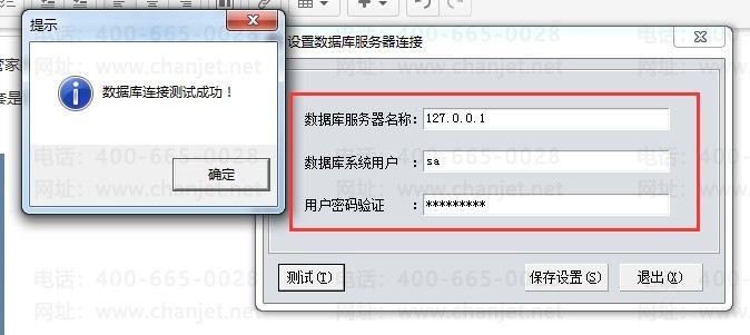 2)在弹出的窗口中查看【数据库服务器名称】【数据库系统用户】【用户密码验证】这三个值,并点击【测试】,查看是否能够连接成功。